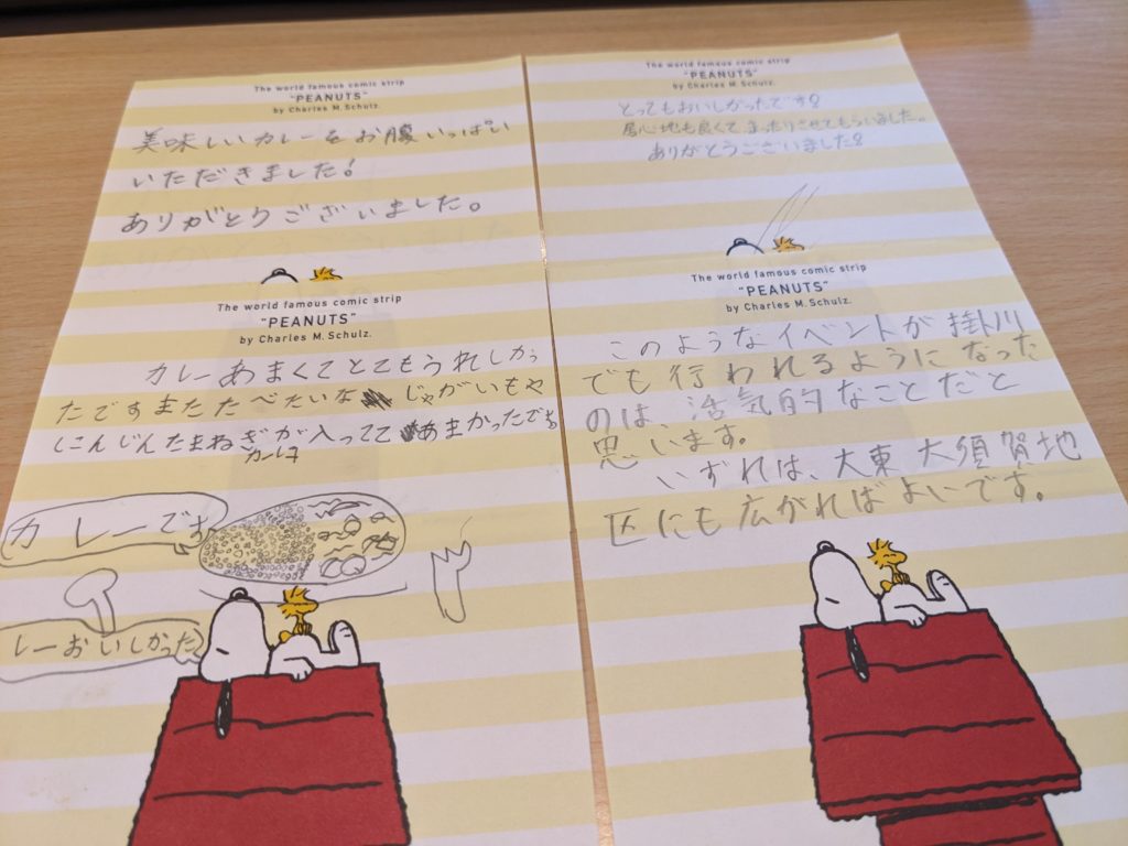 第二回子ども食堂キッズハピネスご感想⓶ 2024年03月27日 昨日に続きまして子ども食堂にて頂きました ご感想を紹介させて頂きます。 ・とても美味しいカレーでした!! 親切にして頂きありがとうございました。 次回も楽しみにしています。 ・カレーおいしかったです。 […] 続きを読む… from 第二回子ども食堂キッズハピネスご感想⓶