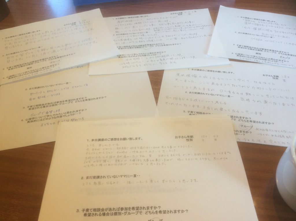 昨日のキッズハッピネスin掛川 2017年02月03日 今回もみなさんの様子を写真に撮るのを忘れてしまいました。 代わりに皆さんから頂いたアンケートを写真どりしてます。^^; 今回は皆さんから頂いていたご要望にお応えして 選択理論心理学について 余り理論的にでなく こんな心理 […] 続きを読む… from 昨日のキッズハッピネスin掛川
